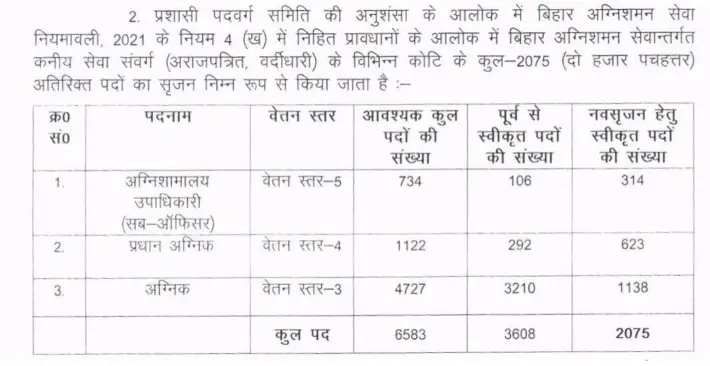 इस साल की Bihar Police Fireman Vacancy में कुल 2075 नई वैकेंसी शामिल हैं, जिनमें Fireman, Leading Fireman, और Fire Station Deputy Officer (Sub-Officer) के पद हैं।
